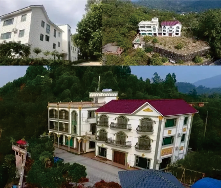 图分别为违建的颐雅山房别墅和名门别墅